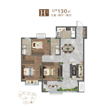 【日照户型库】太阳华府H户型,建面约130㎡,3室2厅2卫