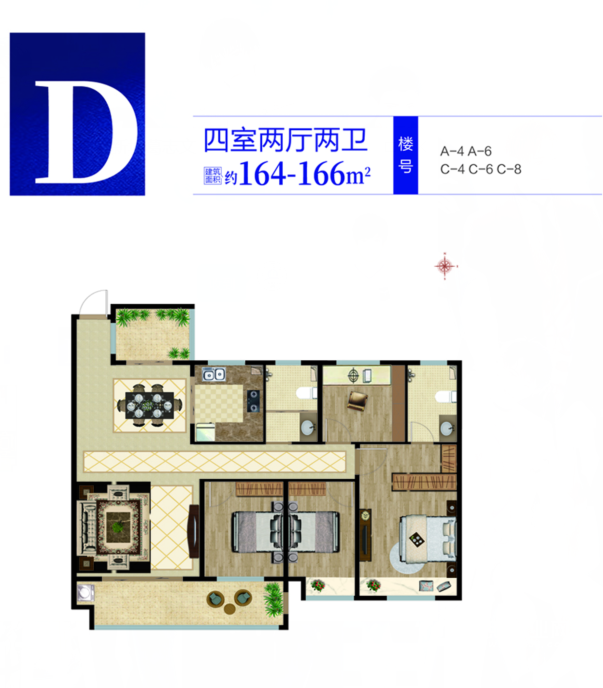 本期给大家介绍锦钰佳苑东区D户型,建面约164-166平4室2厅2卫。