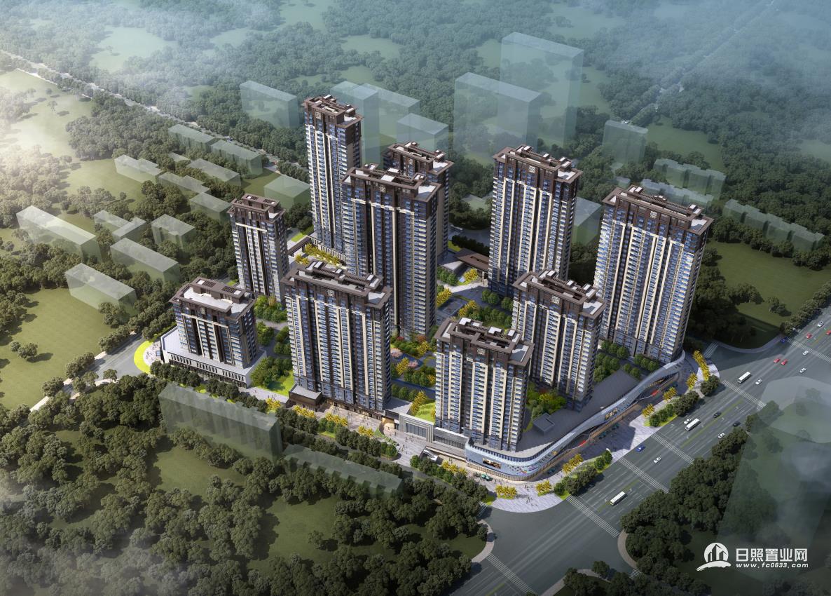 太阳华府,位于日照路与西海路交会处,总占地面积约 3.5 万平,总建面约 23 万平。项目由 10 栋精品住宅和部分 商业组成,住宅采用新亚洲建筑风格建设,沿街商业现代简约。