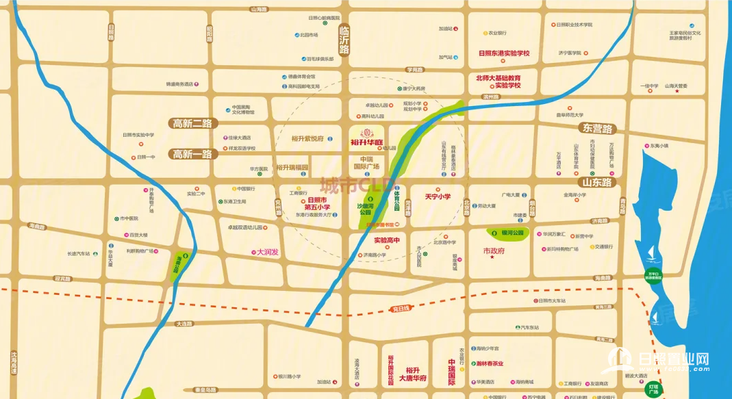 区位与配套无可挑剔,项目位于日照市临沂路与山东路交汇处,地处城市地理中心区位,南邻市文化中心、东港区行政服务大厅,东临沙墩河风景区,是城市未来发展的中央生活区。周边交通便捷,临沂路、山东路等城市主干道环绕,公交线路密集;商业配套成熟,临近大型商超、购物中心等,满足日常购物与休闲需求;教育资源优质,周边多所中小学分布,方便子女就学;医疗资源完善,临近日照市人民医院等医疗机构,为健康保驾护航。